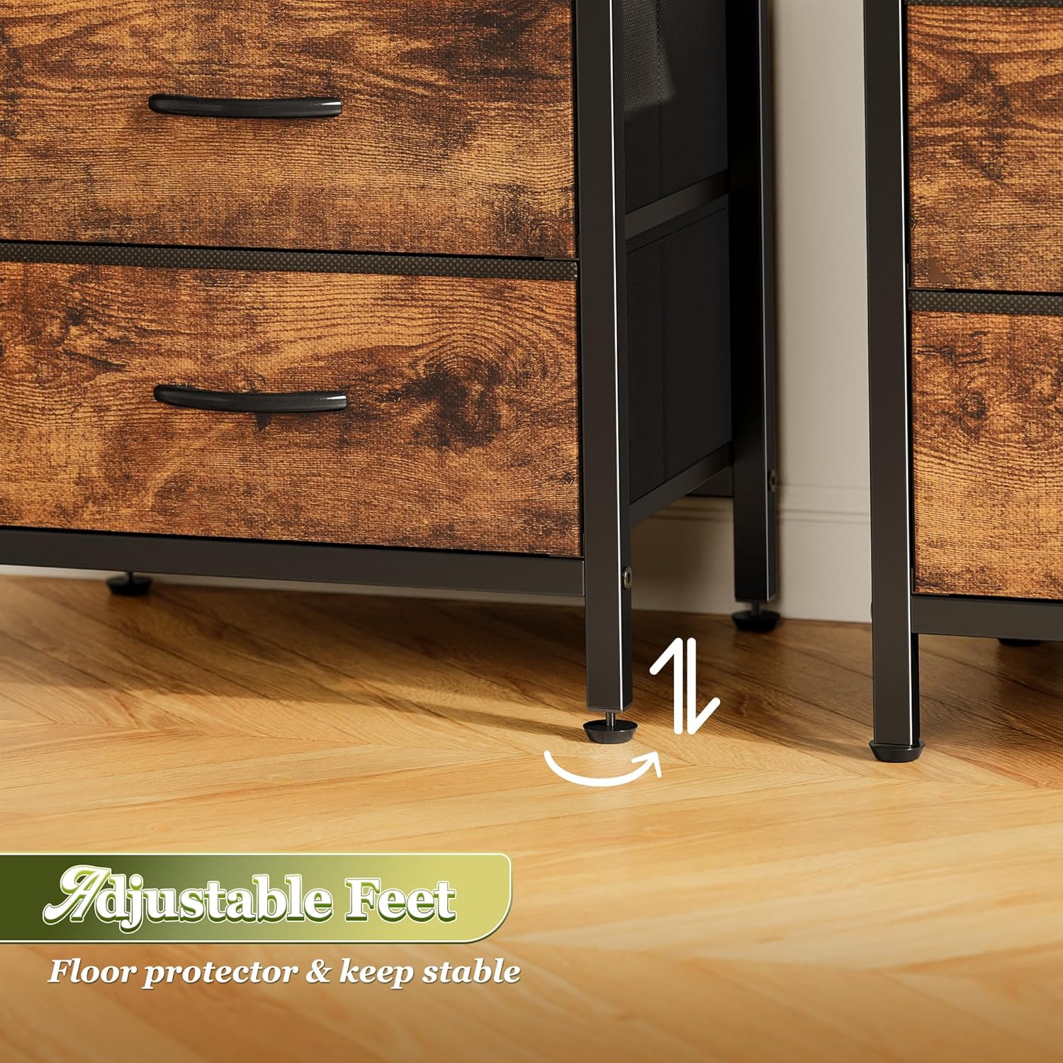 Designed for modern lifestyles and smaller living spaces, this pair of nightstands offers smart storage solutions, reliable durability, and timeless rustic charm. Each piece blends industrial metal framing with warm wood tones and fabric drawers, creating an inviting yet practical addition to any room.